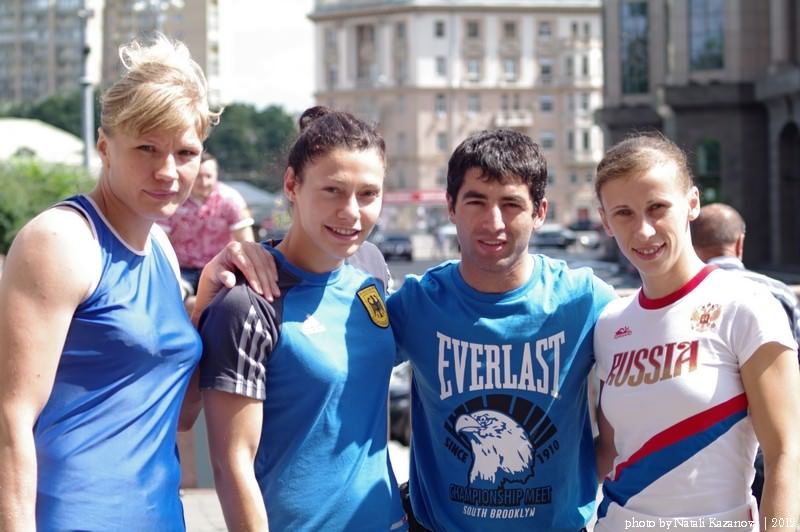 - Наверняка, не последнюю роль тут сыграло и то обстоятельство, что у вас не все, мягко говоря, получилось на Олимпийских играх в Лондоне, осталась некая нереализованность? Что, кстати, там произошло? - На Олимпиаде уже во втором бою я попала на явную фаворитку из Китая, которую еще до начала соревнований, знаю, рассматривали, как минимум, в финале. Но я все равно бы с ней поборолась, не случись досадной травмы: в одном из эпизодов боя попала ей в локоть бицепсом правой руки, после чего этой рукой уже не могла толком работать поскольку, выпрямляя ее, чувствовала сильную боль. В медицине, как потом узнала, это называется разрыв апоневроза. [caption id="attachment_19728" align="aligncenter" width="480"] Надежда Торлопова, Софья Очигава, Миша Алоян и Елена Савельевна перед Олимпиадой 2012 г.[/caption]