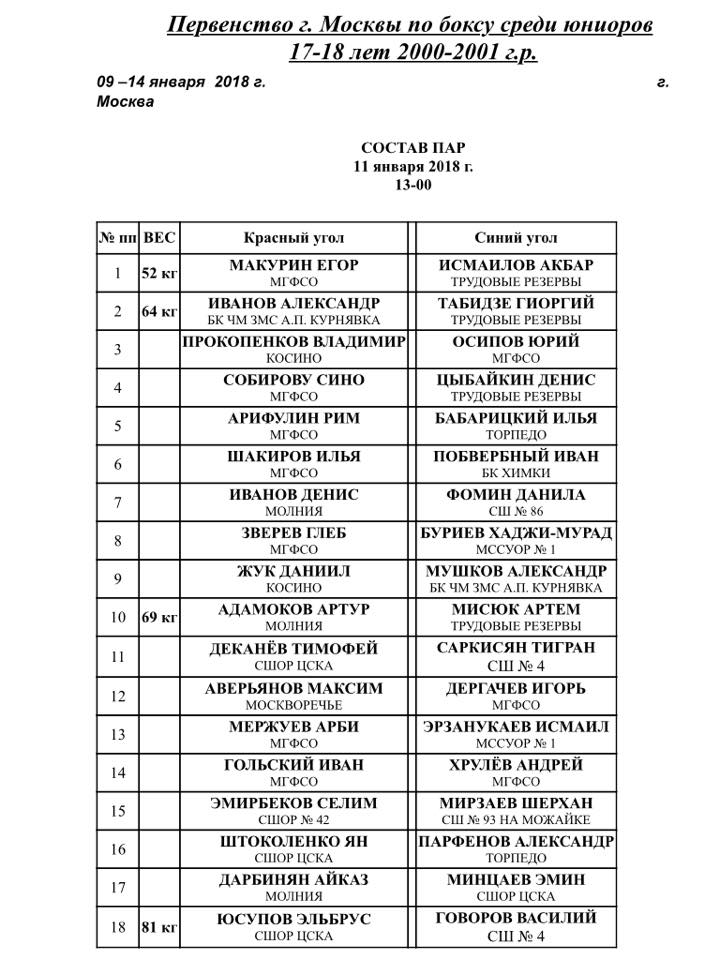 Главная / Архив новостей / ОНЛАЙН ТРАНСЛЯЦИЯ: Первенство г. Москвы среди юниоров (17-18 лет) 2000-2001 г.р. 2-ой день