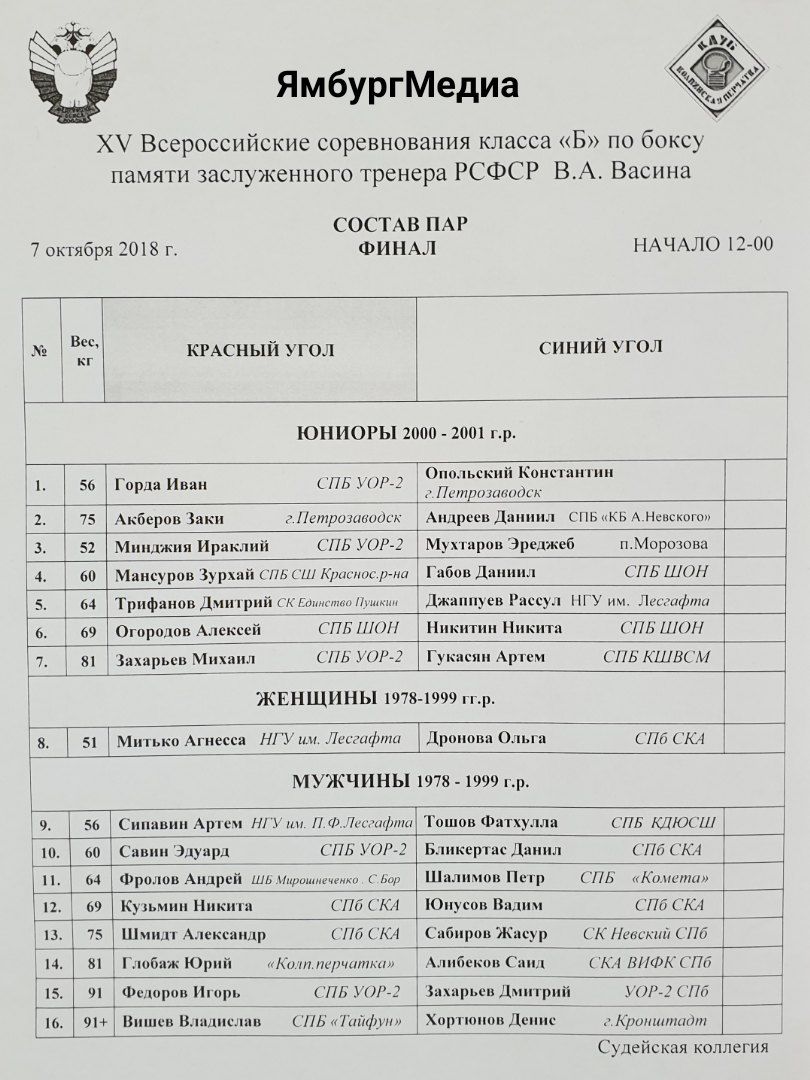 Главная / Архив новостей / ПРЯМАЯ ТРАНСЛЯЦИЯ: Турнир класса Б по боксу памяти ЗТР В.А.Васина 2018. ФИНАЛЫ