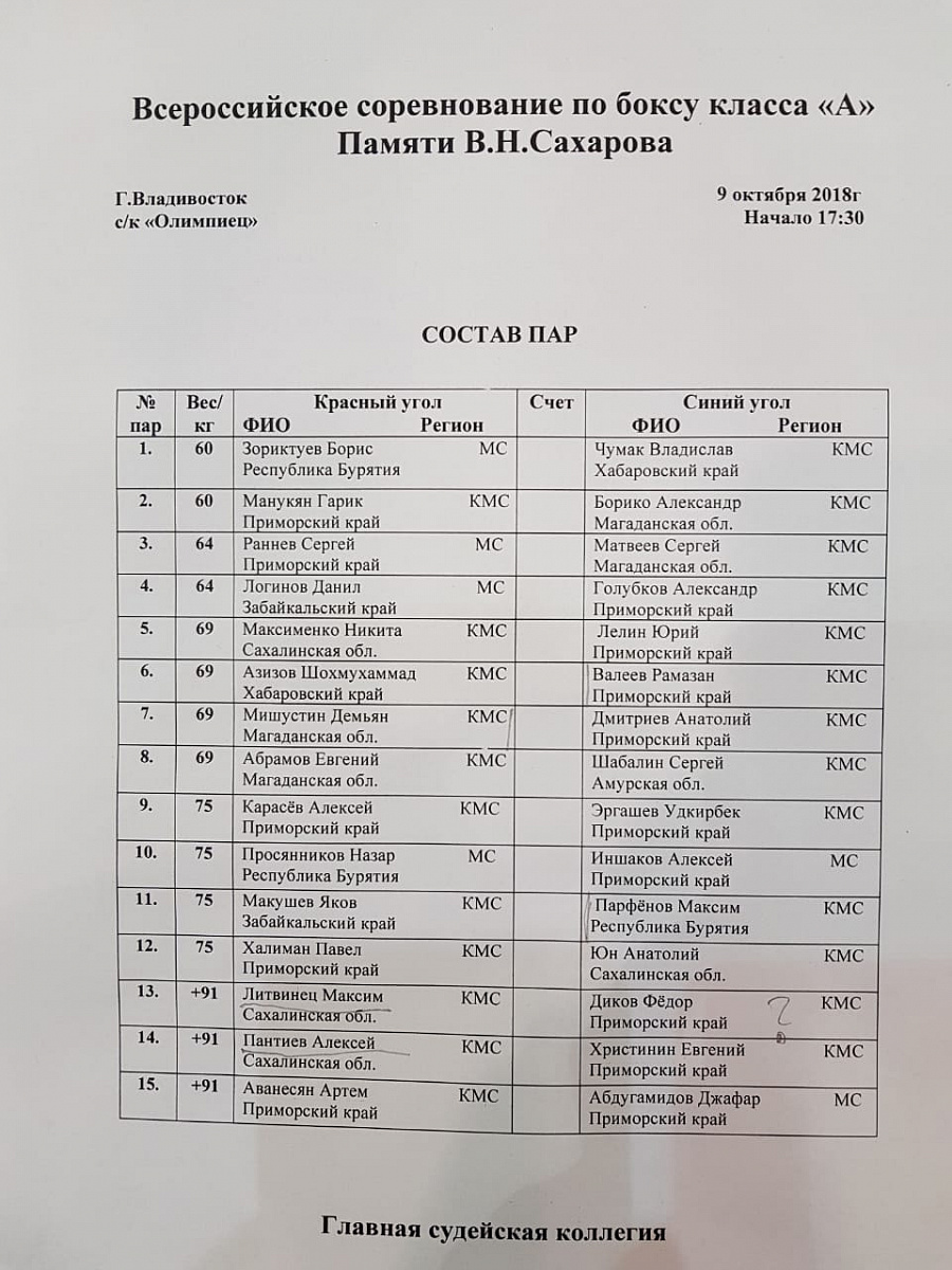 Главная / Архив новостей / ПРЯМАЯ ТРАНСЛЯЦИЯ: ВСЕРОССИЙСКОЕ СОРЕВНОВАНИЕ ПО БОКСУ КЛАССА "А" ПАМЯТИ В.Н.САХАРОВА. ВЛАДИВОСТОК. ДЕНЬ 2-Й