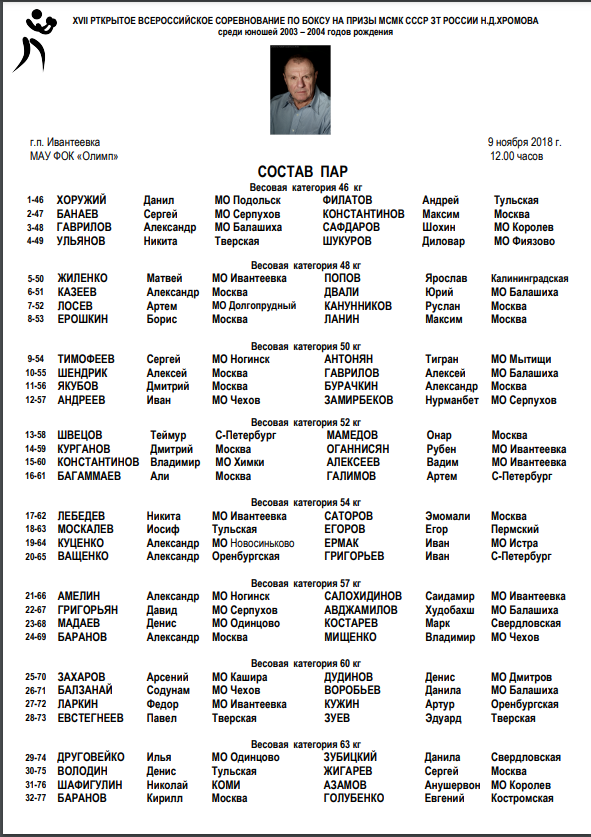 Главная / Архив новостей / ПРЯМАЯ ТРАНСЛЯЦИЯ: XVII Открытое Всероссийское Соревнование по боксу на призы Н.Д, Хромова. Ивантеевка. День 2-й