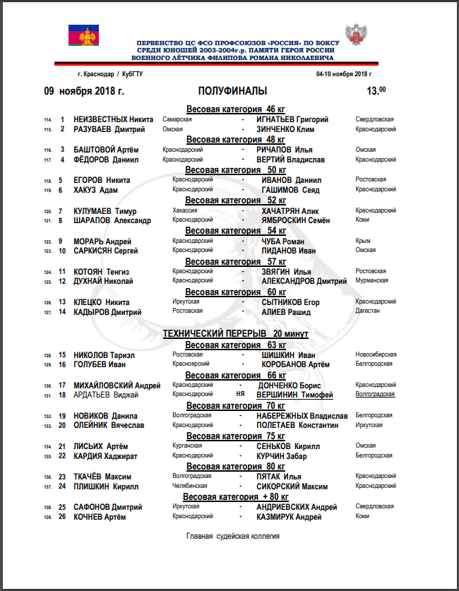 Главная / Архив новостей / ПРЯМАЯ ТРАНСЛЯЦИЯ: Первенство ЦС Профсоюзов "РОССИЯ" среди юношей 14-15 лет. Краснодар. День 5-й