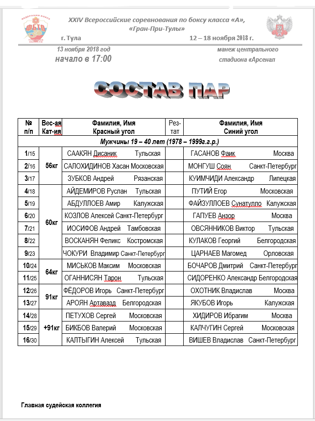 Главная / Архив новостей / ПРЯМАЯ ТРАНСЛЯЦИЯ: 24-е Всероссийские соревнования по боксу класса "А" "Гран-При Тулы". День 1-й. ВЕЧЕРНЯЯ СЕССИЯ