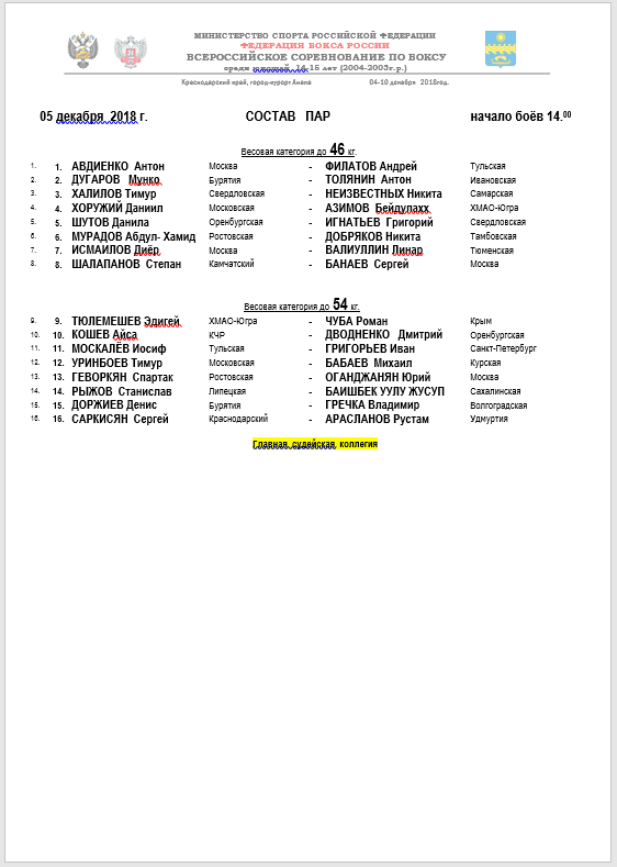 Всероссийские соревнования по боксу среди юношей 14-15 лет. г. Анапа. День 1-й