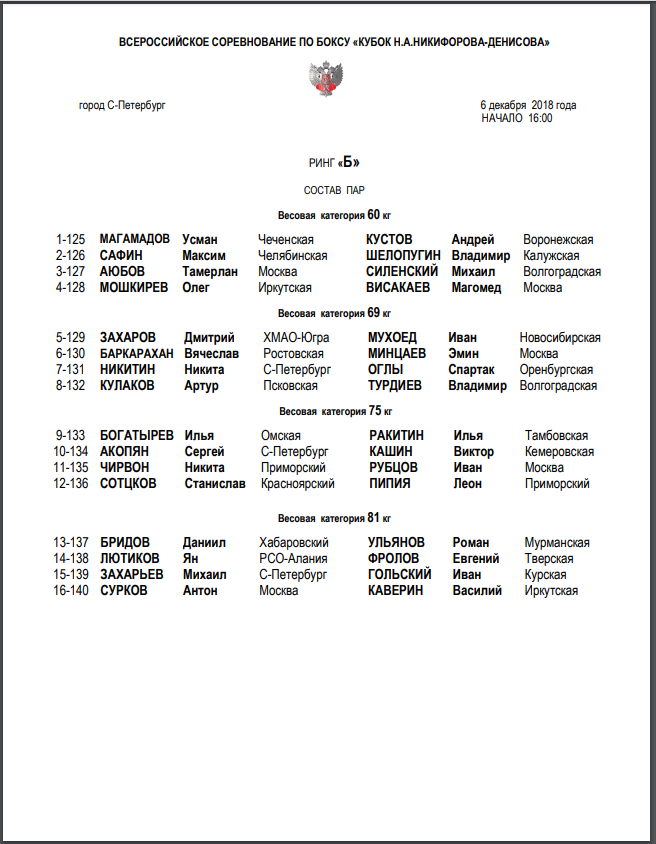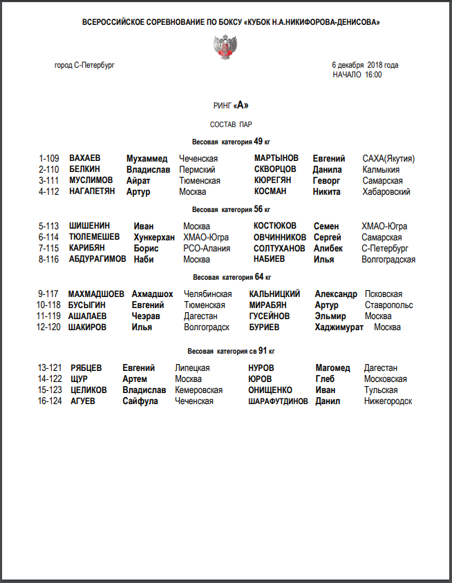 Главная / Архив новостей / Всероссийское соревнование по боксу "Кубок Н.А. Никифорова-Денисова" памяти почетного президента АИБА. г. Санкт-Петербург. День 4-й