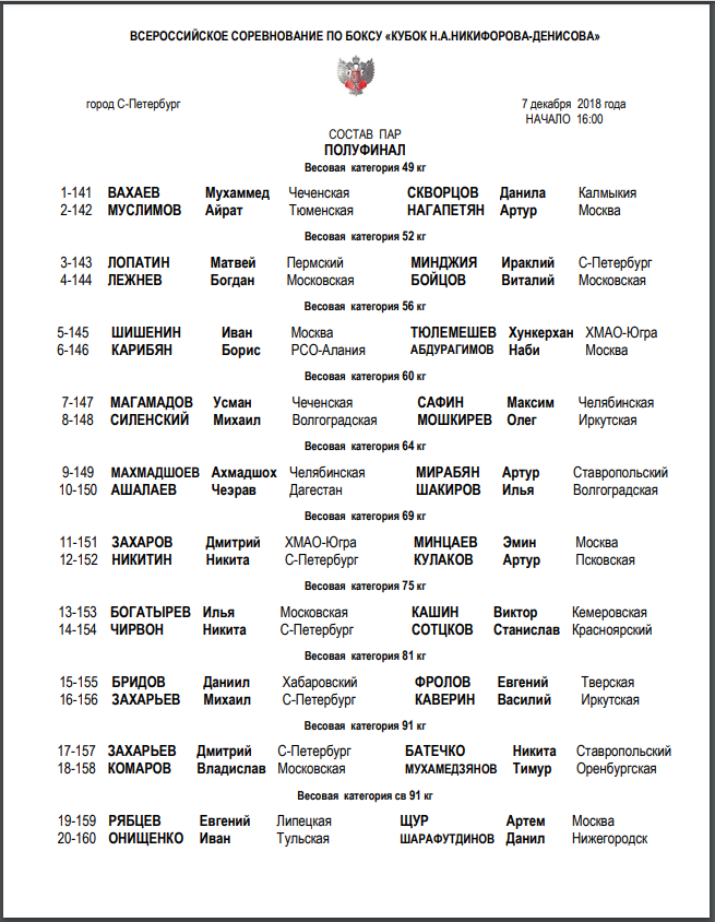 Всероссийское соревнование по боксу "Кубок Н.А. Никифорова-Денисова" памяти почетного президента АИБА. г. Санкт-Петербург. ПОЛУФИНАЛЫ