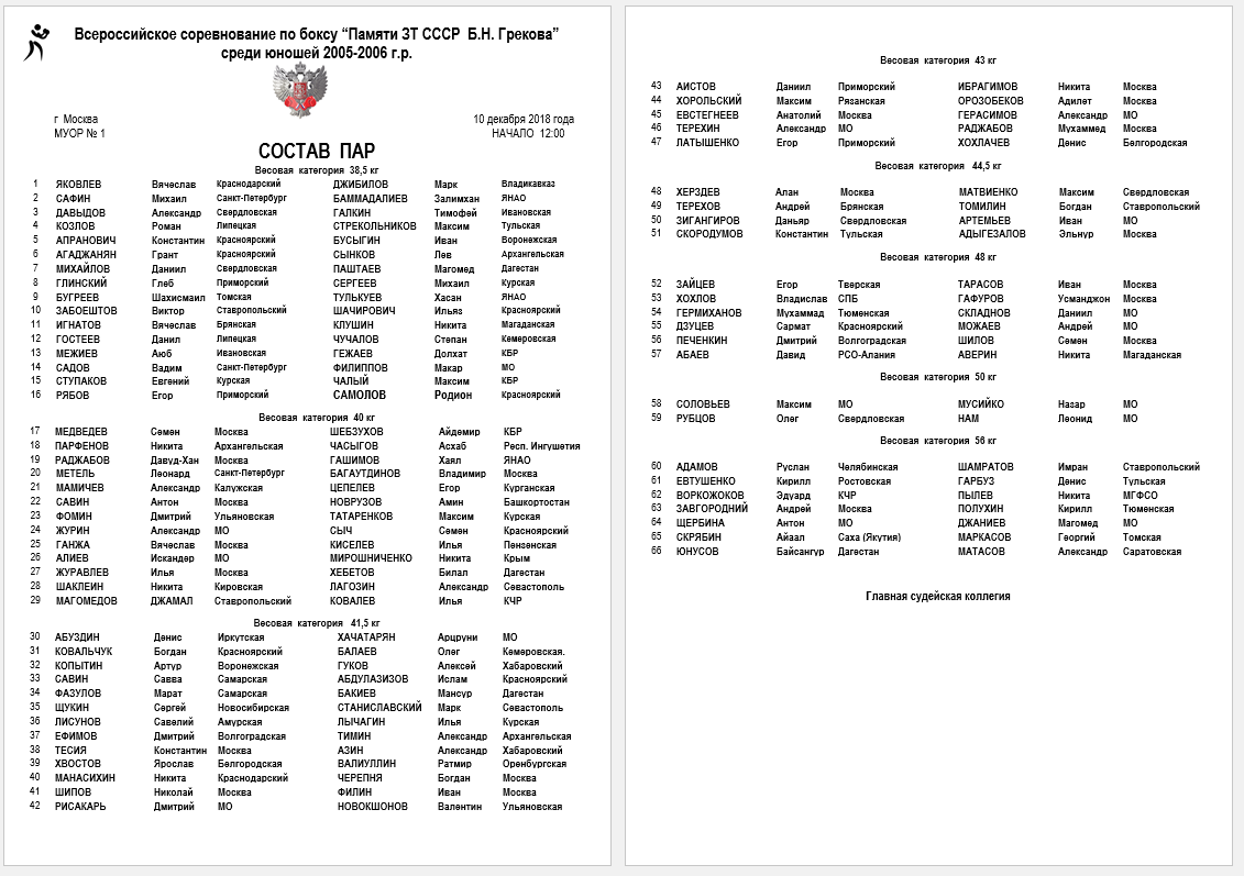 Всероссийские соревнования по боксу "Памяти ЗТ СССР Б.Н. Грекова" среди юношей