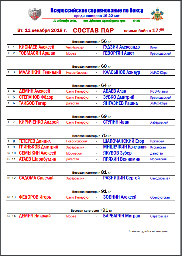 Всероссийское соревнование по боксу среди юниоров 19-22 лет. пгт. Афипский. День 1-й