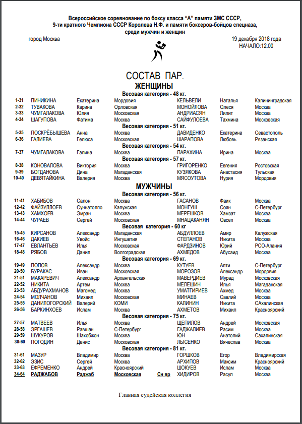 Главная / Архив новостей / Всероссийское соревнование по боксу класса "А" памяти Н.Ф. Королева. г. Москва. День 2-й