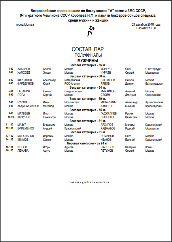 Главная / Архив новостей / Всероссийское соревнование по боксу класса "А" памяти Н.Ф. Королева. г. Москва. ПОЛУФИНАЛЫ