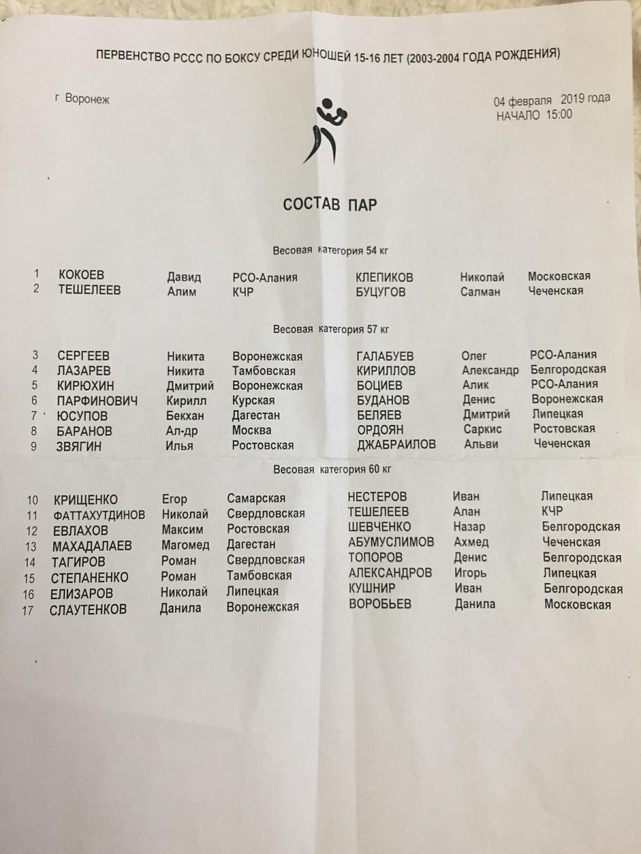Первенство РССС по боксу среди юношей 15-16 лет. День 1-й