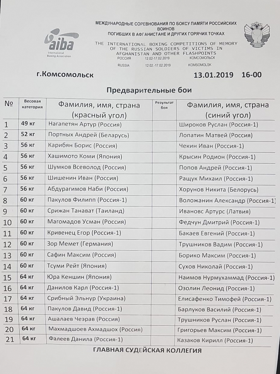 Международные соревнования по боксу памяти Российских воинов погибших в Афганистане и других горячих точках. г. Комсомольск. День 1-й