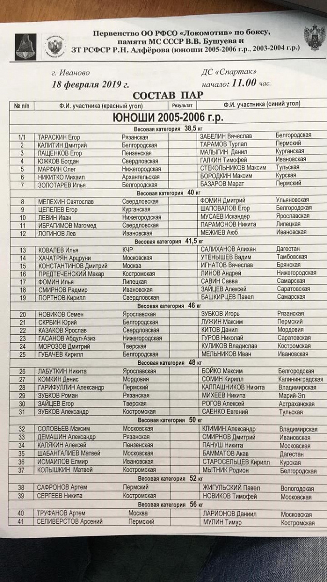 Главная / Архив новостей / Первенство ОО РФСО "Локомотив" по боксу среди юношей 13-14 и 15-16 лет. г. Иваново. День 1-й