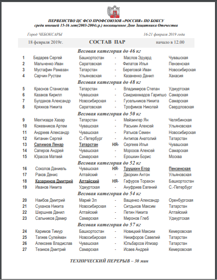 Главная / Архив новостей / Первенство ЦС ФСО профсоюзов "Россия" по боксу среди юношей 15-16 лет. г. Чебоксары. День 2-й