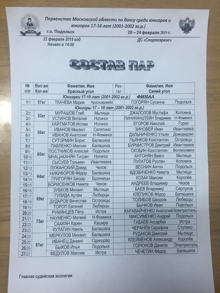 Главная / Архив новостей / Первенство Московской области по боксу среди юниоров и юниорок 17-18 лет. г. Подольск. День 2-й