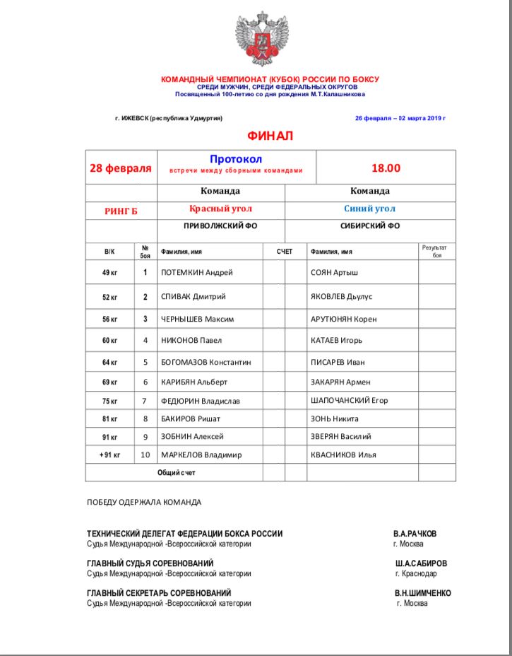 Кубок России по боксу среди мужчин. ФИНАЛЫ