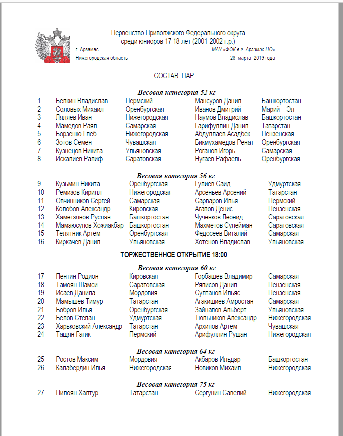 Первенство ПФО среди юниоров 17-18 лет. Арзамас. День 1-й