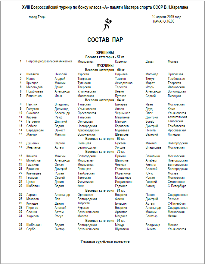 Главная / Архив новостей / 18 Всероссийский турнир по боксу класса "А" памяти Мастера спорта СССР В.Н. Карелина. г. Тверь. День 1-й