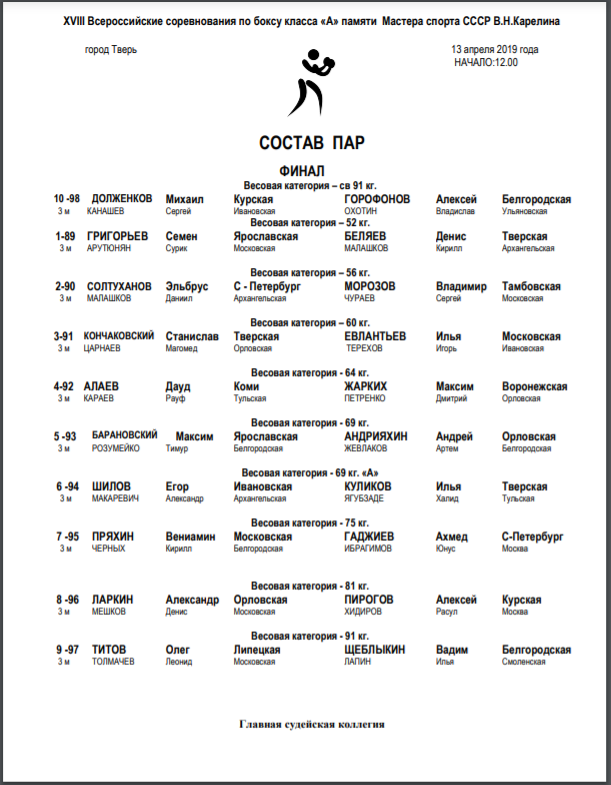 18 Всероссийский турнир по боксу класса "А" памяти Мастера спорта СССР В.Н. Карелина. г. Тверь. ФИНАЛЫ