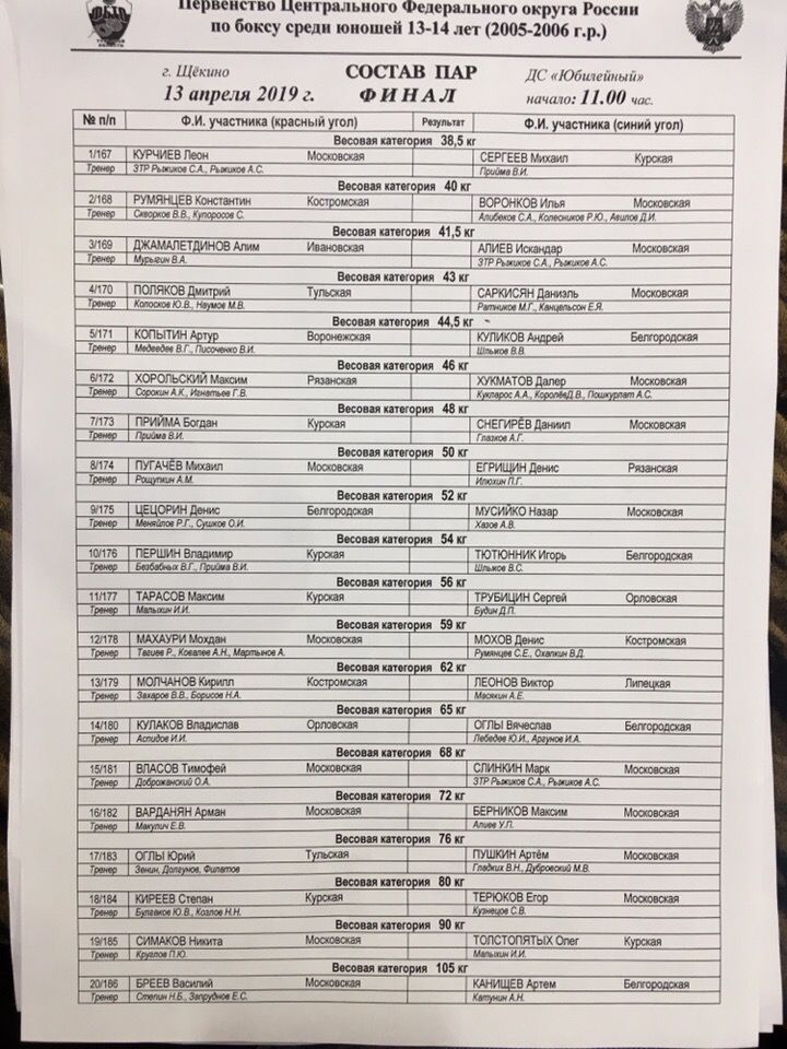 Первенство ЦФО по боксу среди юношей 13-14 лет. ФИНАЛЫ