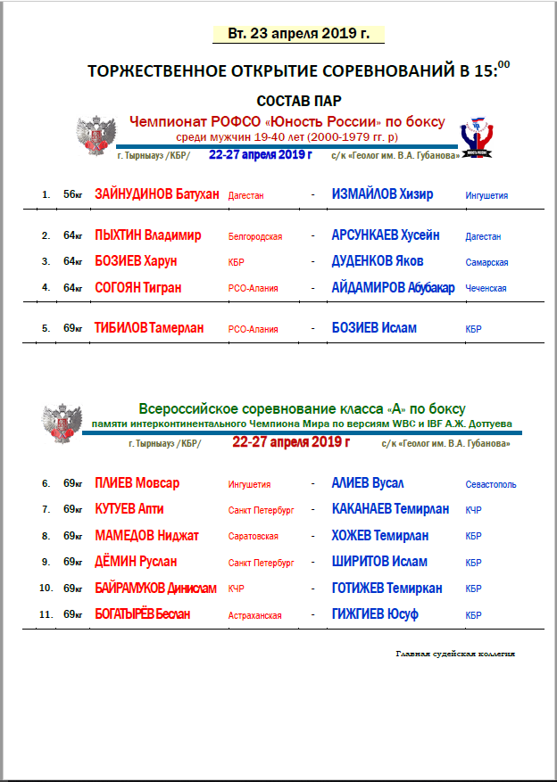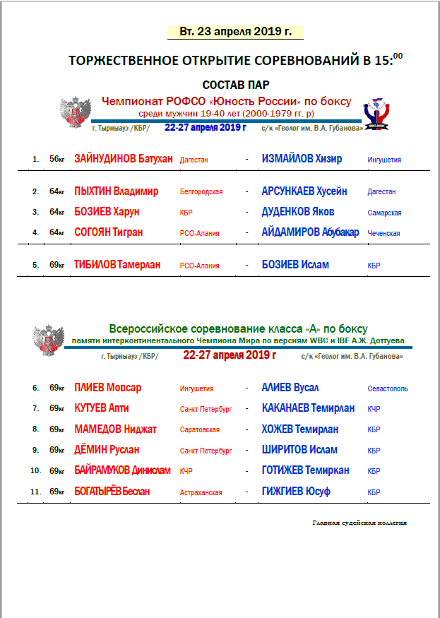 Чемпионат РОФСО "Юность Росии" по боксу среди мужчин 19-40 лет. День 1-й