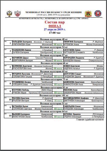 Чемпионат России по боксу среди женщин 19-40 лет 2019г. Кемерово ФИНАЛЫ