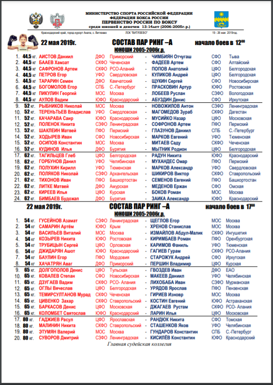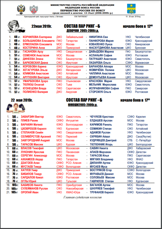 Главная / Архив новостей / Первенство России по боксу среди юношей и девушек 13-14 лет. Витязево. День 3-й
