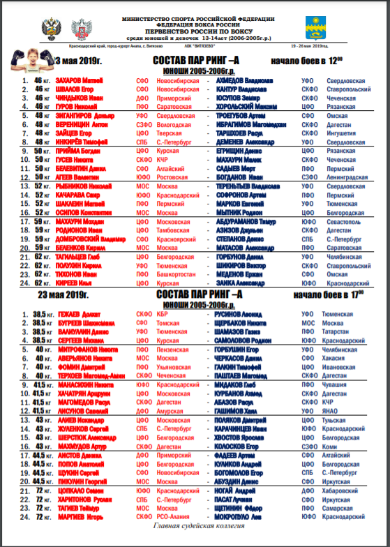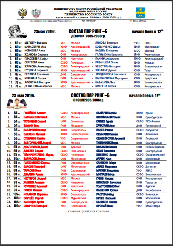 Главная / Архив новостей / Первенство России по боксу среди юношей и девушек 13-14 лет. Витязево. День 4-й