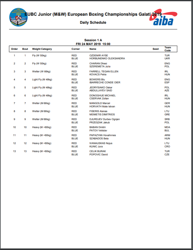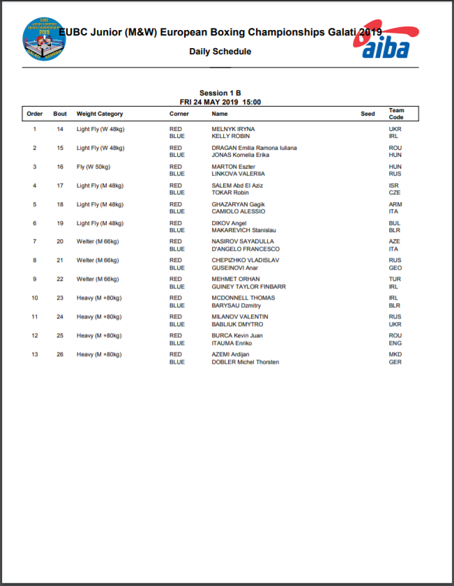 Главная / Архив новостей / Первенство Европы по боксу среди юношей и девушек 15-16 лет. Румыния. День 1-й