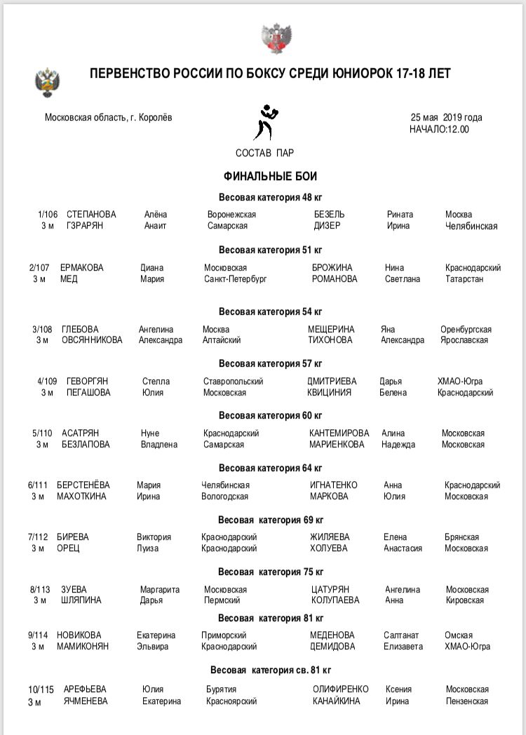 Первенство России по боксу среди юниорок 17-18 лет. Королев. ФИНАЛЫ