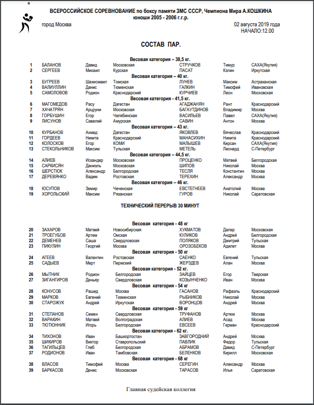 Главная / Архив новостей / Всероссийское соревнование по боксу памяти Александра Кошкина среди юношей 13-14 лет. Москва. День 1-й