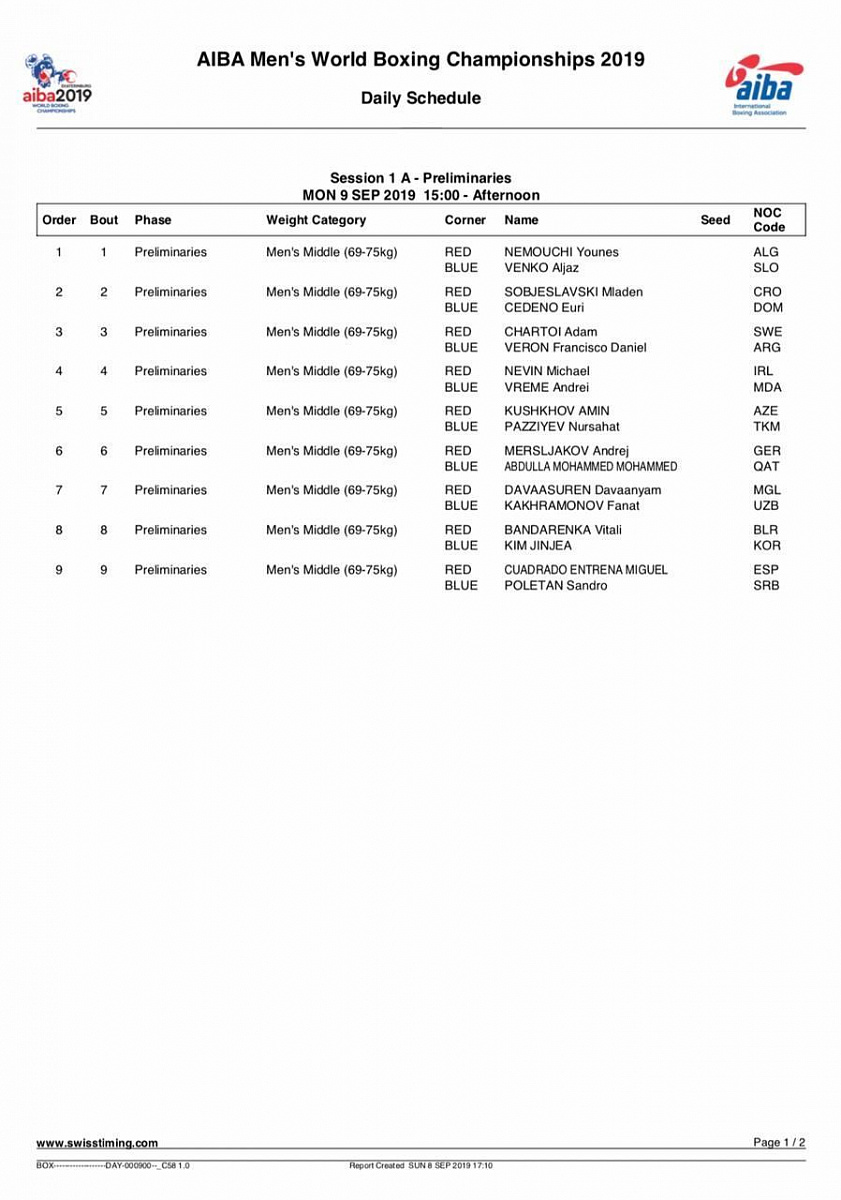 Чемпионат мира по боксу среди мужчин. Екатеринбург. День 1
