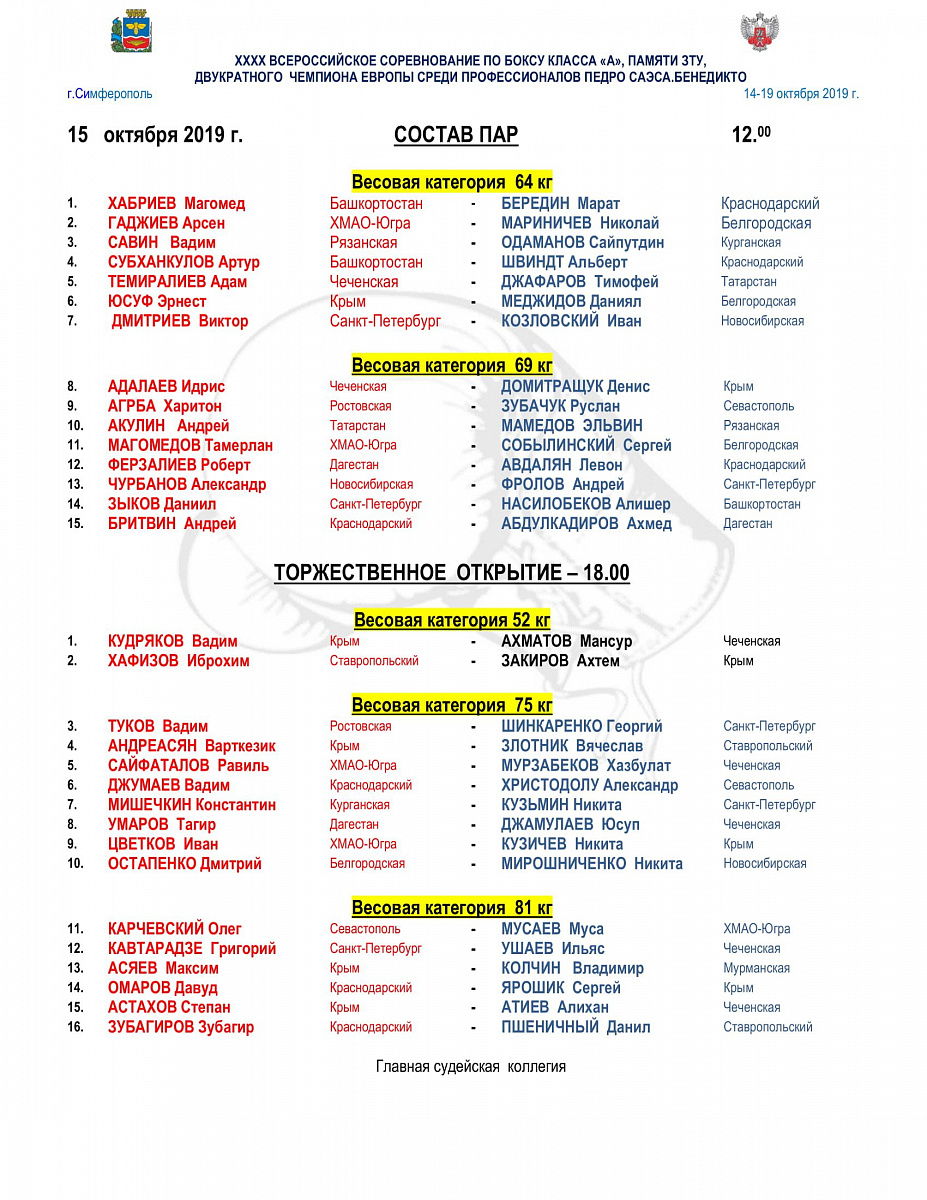 Главная/Архив новостей/ 40-е Всероссийские соревнования по боксу класса "А" памяти ЗТ Украины, двукратного чемпиона Европы среди боксеров-профессионалов Педро Саэс Бенедикто. Симферополь. День 1