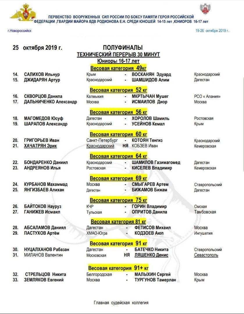 Главная / Архив новостей / Первенство Вооруженных Сил Российской Федерации по боксу среди юниоров 16-17 лет и юношей 14-15 лет. Новороссийск. День 5