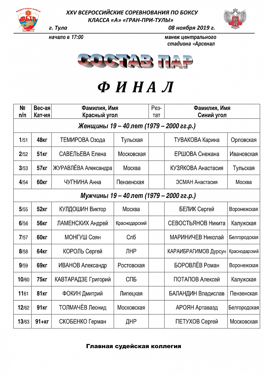 XXV Всероссийские соревнования по боксу класса "А" "Гран-При-Тулы". Тула. ФИНАЛЫ