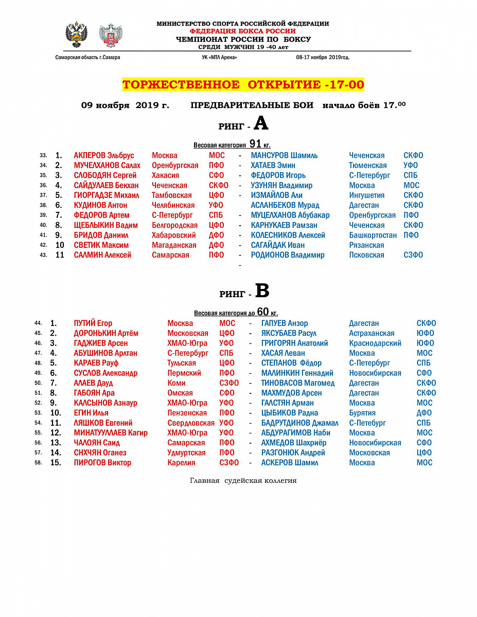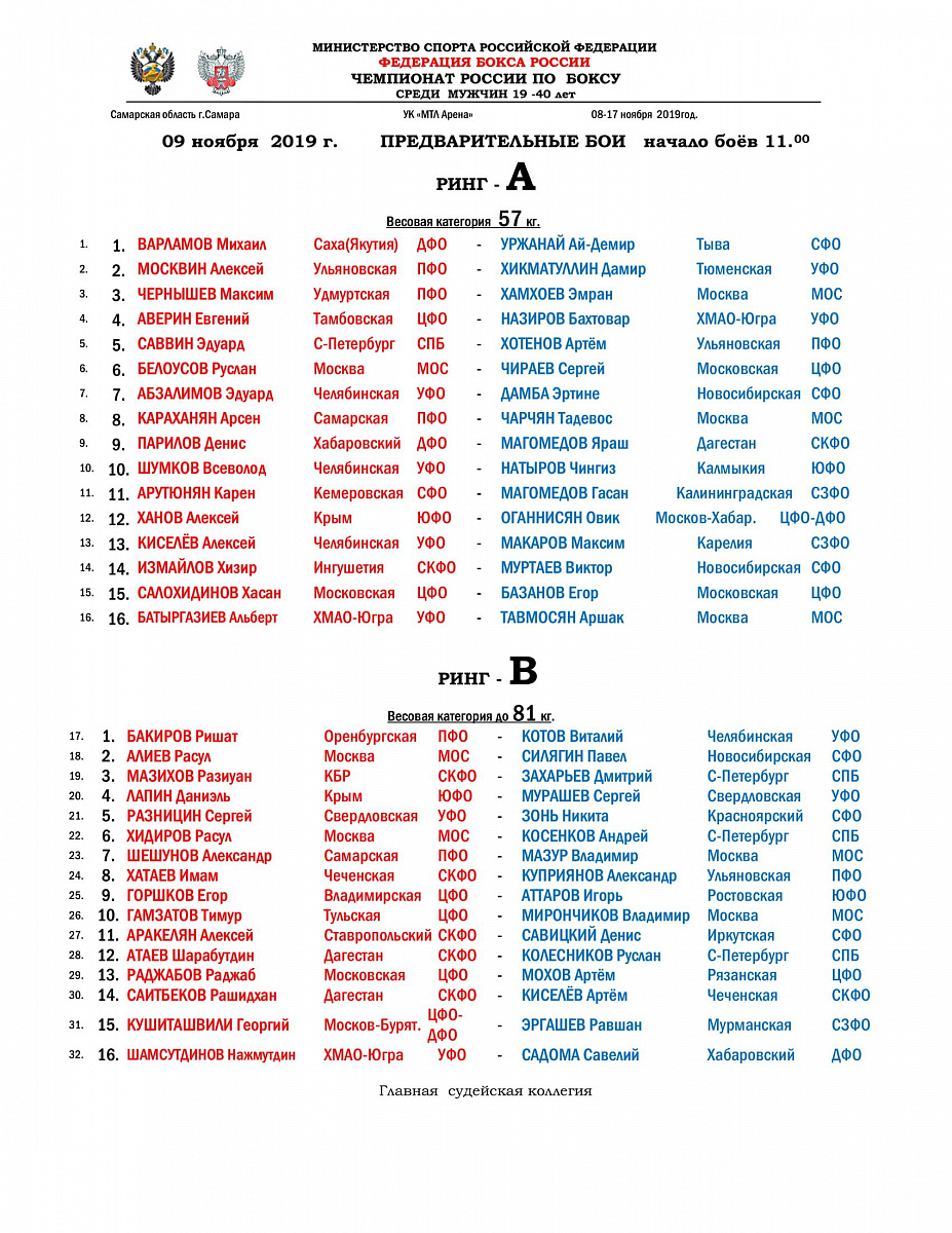 Чемпионат России по боксу среди мужчин 2019. Самара. День 1