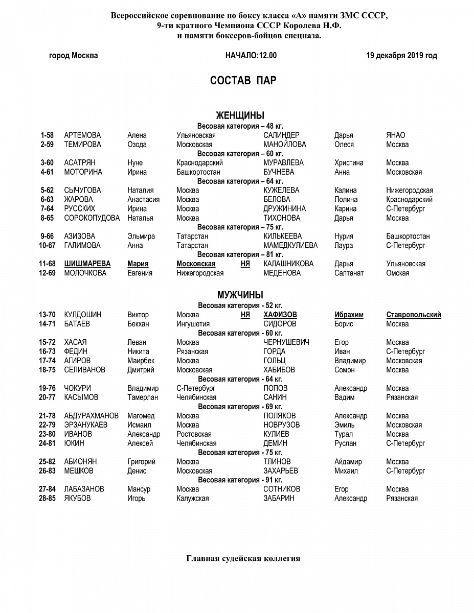 Главная / Архив новостей / Всероссийское соревнование класса "А" по боксу памяти Королева Н.Ф. 2019. Москва. День 3