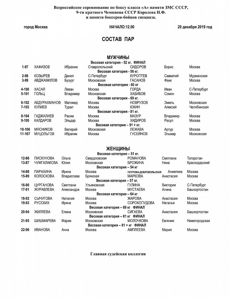 Главная / Архив новостей / Всероссийское соревнование класса "А" по боксу памяти Королева Н.Ф. 2019. Москва. ПОЛУФИНАЛЫ