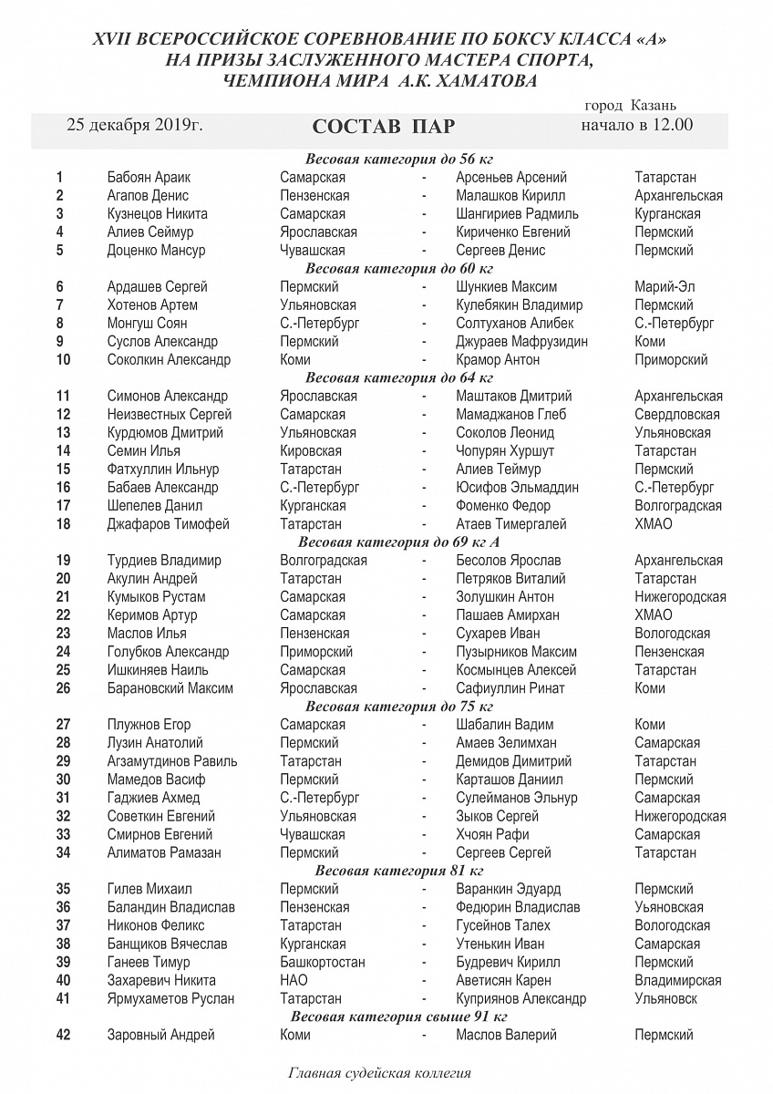 Главная / Архив новостей / XVII Всероссийское соревнование по боксу класса "А" на призы ЗМС, Чемпиона мира А.К. Хаматова. Казань. День 1