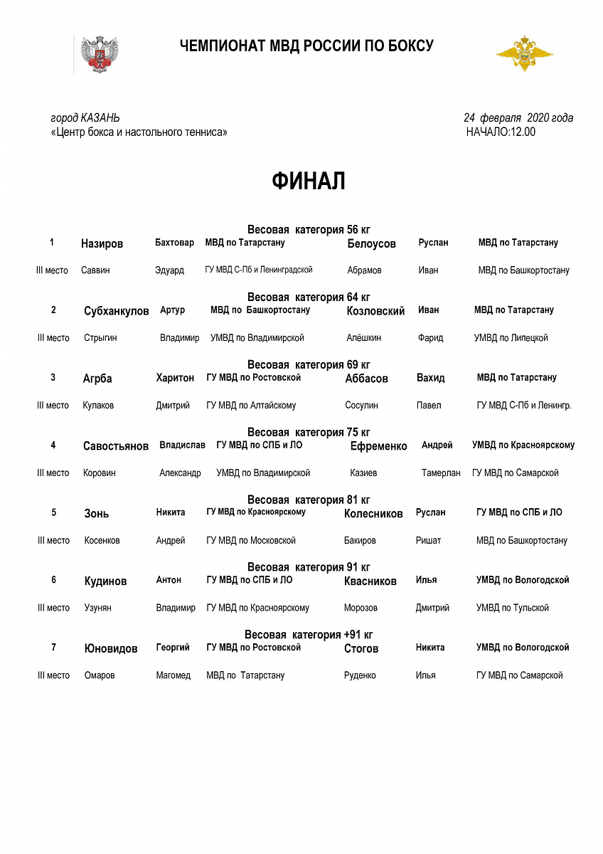 Чемпионат МВД России по боксу среди мужчин. Казань. ФИНАЛЫ