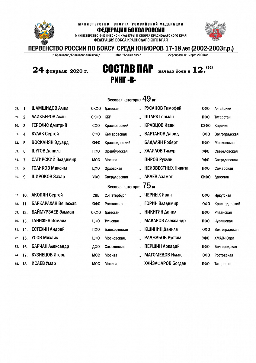 Первенство России по боксу среди юниоров 17-18 лет. Краснодар. День 2