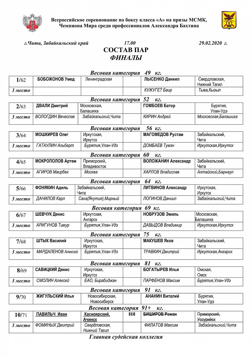 Всероссийское соревнование по боксу на призы МСМК Александра Бахтина. Чита. ФИНАЛЫ