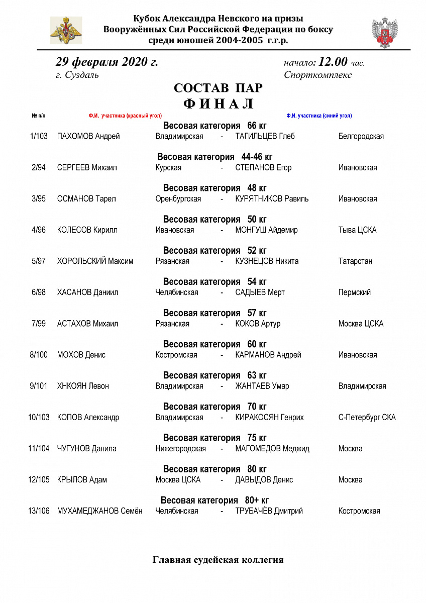 Главная / Архив новостей / Кубок Александра Невского на призы ВС РФ по боксу среди юношей. Суздаль. ФИНАЛЫ