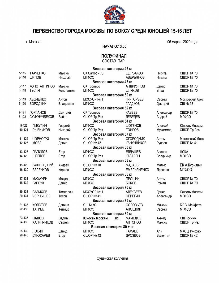 Первенство Москвы по боксу среди юношей 15-16 лет. ПОЛУФИНАЛЫ