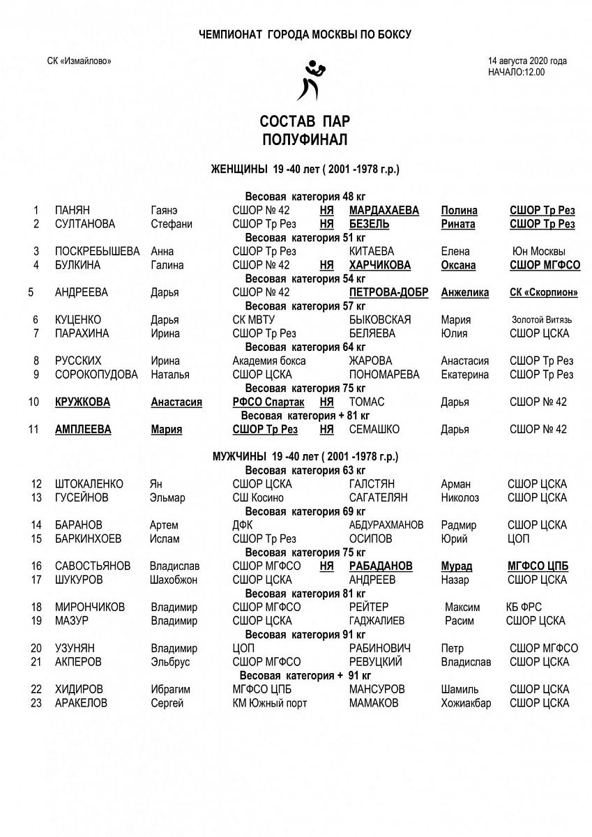 Чемпионат Москвы по боксу среди мужчин и женщин 2020. ПОЛУФИНАЛЫ
