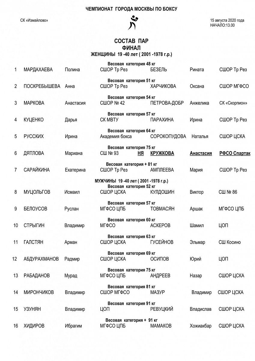 Чемпионат Москвы по боксу среди мужчин и женщин 2020. ФИНАЛЫ