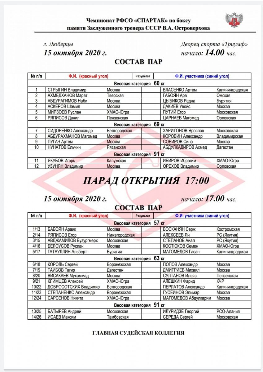 Главная / Архив новостей / Чемпионат РФСО "Спартака" по боксу памяти Заслуженного тренера СССР В.А. Островерхова. Люберцы. День 1