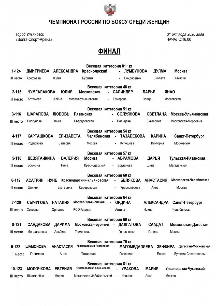Чемпионат России по боксу среди женщин 2020. Ульяновск. ФИНАЛЫ