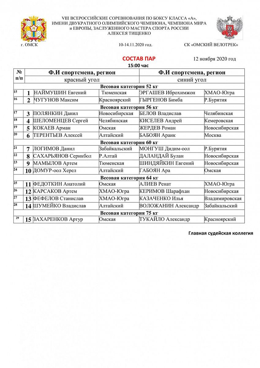 Главная / Архив новостей / ВС по боксу класса "А" имени двукратного олимпийского чемпиона, чемпиона мира и Европы, заслуженного мастера спорта России Алексея Тищенко. Омск. День 2