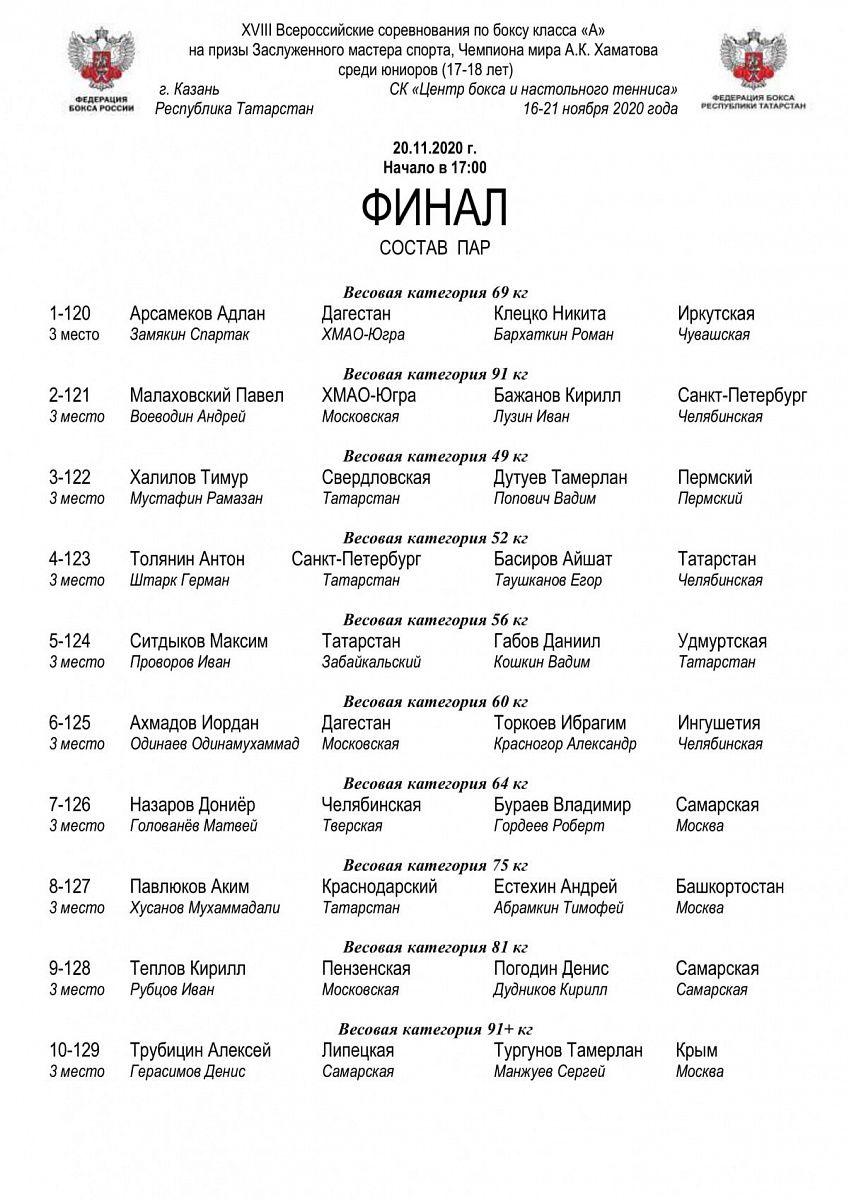 ВС класса "А" на призы Заслуженного мастера спорта, чемпиона мира А.К Хаматова. Казань. ФИНАЛЫ